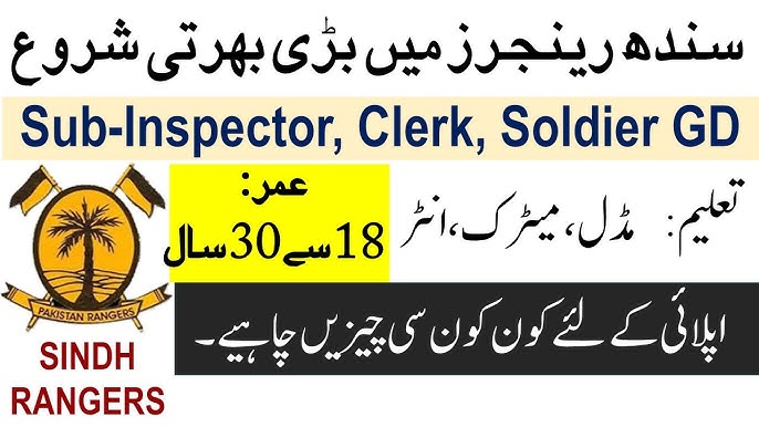 Apply Now through their official website. Pakistan Sindh Rangers is under the command of the Pakistan Army and works for the federal government of Pakistan. Almost 400 jobs have been announced for Pakistan Sindh rangers.